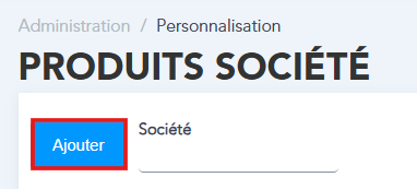Accédez au menu Admin > Personnalisation > Produits société et cliquez sur Ajouter :