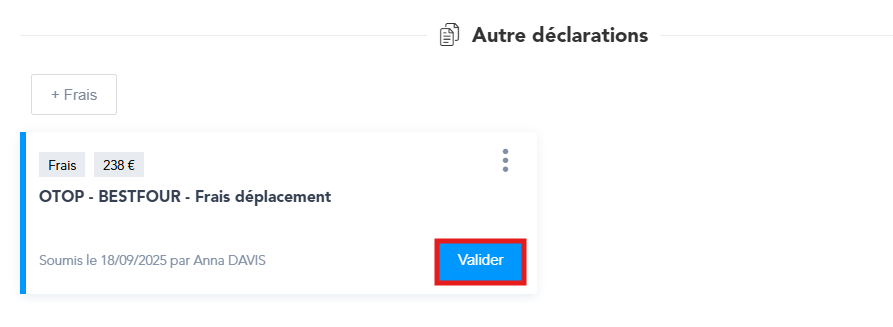Validation des frais : Une fois la déclaration soumise, le gestionnaire procède à la validation.