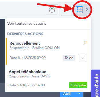 Suivez l’ensemble des actions associées à ce contrat en cliquant sur l’icône représentant une to-do list :